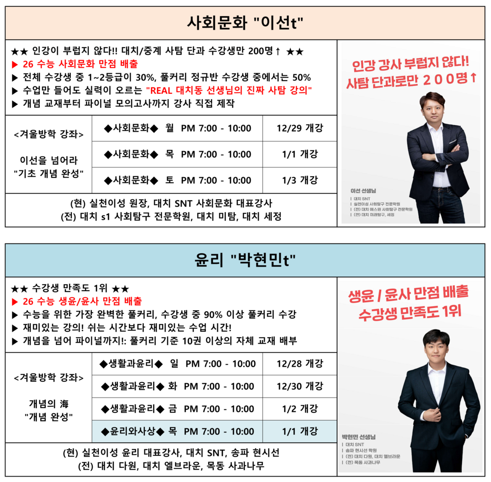 ★ 겨울방학 수능 수업 : 사문/윤리 ★