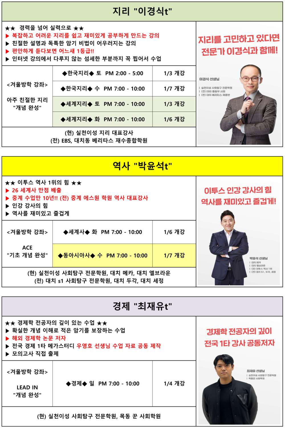 ★ 겨울방학 수능 수업 : 지리/역사/경제 ★